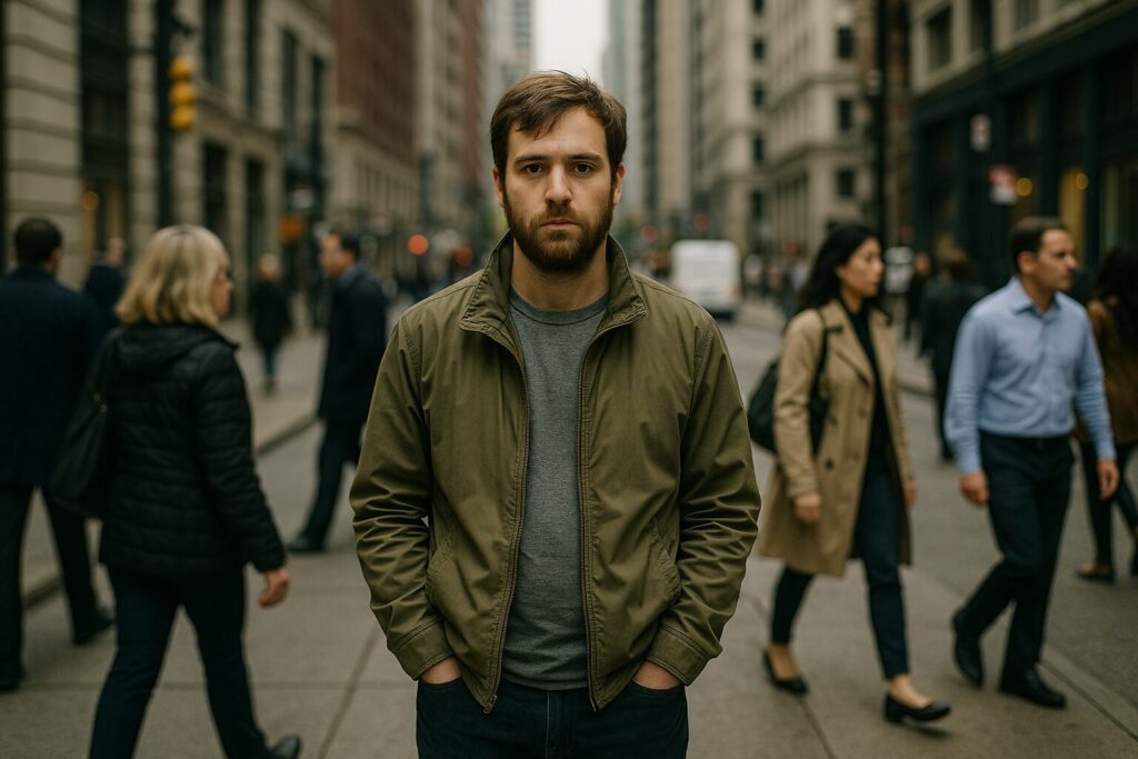 Kiedy mijamy człowieka na ulicy, widzimy tylko jego zewnętrzną postać. Zauważamy, jak wygląda, w co jest ubrany, w jaki sposób się porusza, jaką ma fryzurę i wyraz twarzy. W dużych miastach często jest to nieobecny wzrok, pośpiech i związana z nim irytacja.